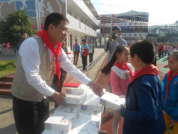 在捐贈儀式上,少先隊大隊長向全體同學發出倡議:誦讀中華經典,沐浴經典成長,爭做“羊小文明之星”。隨后,江蘇永尚能源科技有限公司董事長于彩成為羊小學生贈送了200多冊啟蒙教育叢書。于叔叔希望同學們能認真誦讀《新弟子規》、《新三字經》、《新小兒語》、《處世歌訣》、《警世賢文》等經典書籍,弘揚傳統美德,從小立志,不斷上進,做一個懂孝悌、明道義、知廉恥的人。