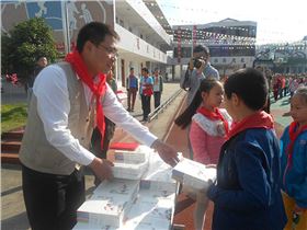 在捐贈儀式上,少先隊大隊長向全體同學(xué)發(fā)出倡議:誦讀中華經(jīng)典,沐浴經(jīng)典成長,爭做“羊小文明之星”。隨后,江蘇永尚能源科技有限公司董事長于彩成為羊小學(xué)生贈送了200多冊啟蒙教育叢書。于叔叔希望同學(xué)們能認(rèn)真誦讀《新弟子規(guī)》、《新三字經(jīng)》、《新小兒語》、《處世歌訣》、《警世賢文》等經(jīng)典書籍,弘揚傳統(tǒng)美德,從小立志,不斷上進(jìn),做一個懂孝悌、明道義、知廉恥的人。
